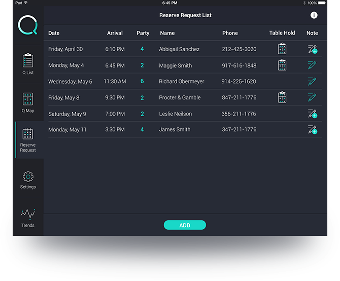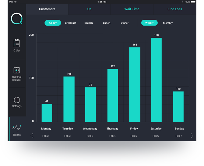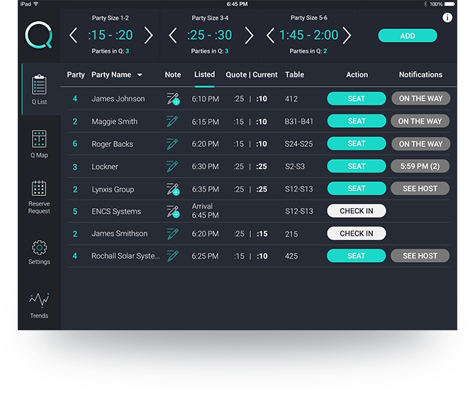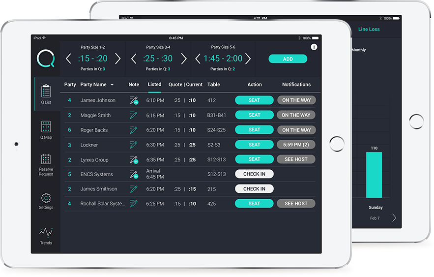 Using Q, restaurants increase 3%-10% more business because customers can convert from search to a party on your arrival list.